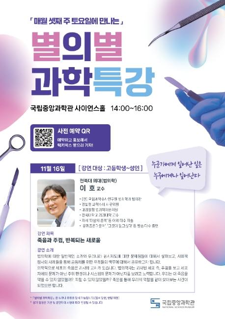 과학기술정보통신부는 11월 셋째주 토요일에 『11월 별의별 과학특강』이 국립중앙과학관에서 펼쳐질 예정이라고 밝혔다.
