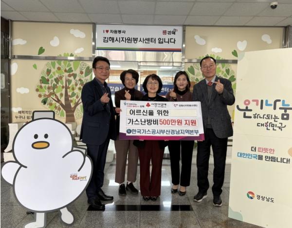 김해시자원봉사센터는 한국가스공사 부산경남지역본부와 함께 저소득 어르신 50여세대의 따뜻한 겨울나기를 위해 가스난방비 500만원을 지원했다고 2일 밝혔다.