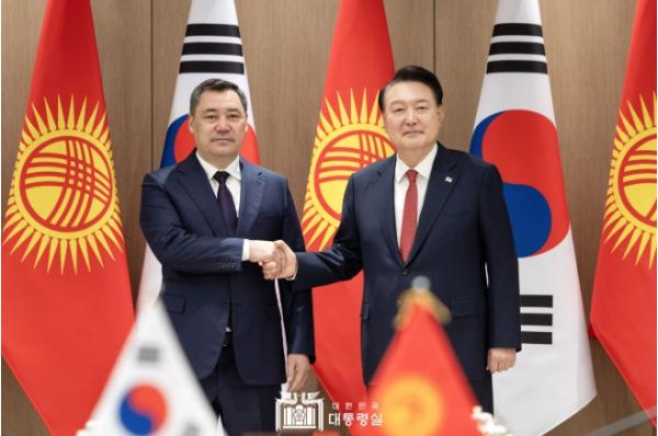 윤석열 대통령은 12월 3일 한국을 공식 방문 중인 ?사디르 자파로프(Sadyr Zhaparov)? 키르기즈공화국 대통령과 정상회담을 갖고, 양국 간 협력 증진 방안과 러북 군사협력을 비롯한 지역 및 국제 정세에 대해 폭넓은 의견을 교환했다.