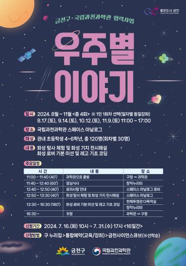 지난 5월, 금천구와 국립과천과학관(관장 한형주)은 과학문화 확산을 위한 업무협약을 체결했고 협약사업의 일환으로 ‘우주별 이야기’ 프로그램을 운영한다.
