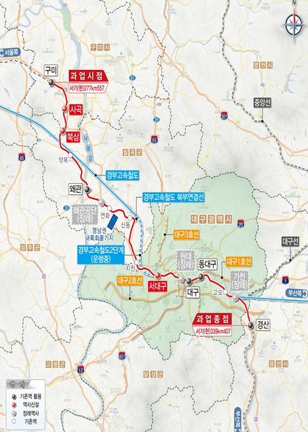 본 사업은 경부선 고속철도 전용선 개통에 따른 기존선로의 여유용량을 활용해 저비용 고효율 철도망 구축으로, 도시간 대중교통 역할과 철도교통 낙후지역에 대한 보완효과를 수행하며 기존 5개 역(구미?왜관?대구?동대구?경산역)은 개량, 3개 역은 신설[사곡(구미), 서대구(22. 3월 개통), 북삼(칠곡, 25년 말 개통)]해 주민들의 접근성을 대폭 높였다.