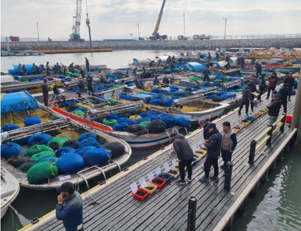 무안산 지주식 햇김은 11월 10일에 첫 물김 위판을 시작으로 11월 중순부터 본격적인 수확을 하여 현재까지 1,195톤의 물김이 위판되었다.