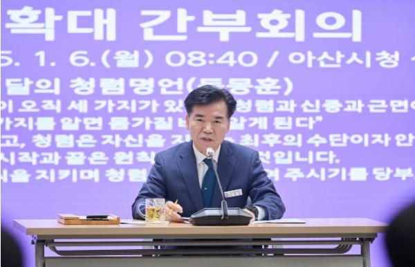 조일교 아산시장 권한대행이 2025년 첫 확대간부회의에서 소상공인을 위한 실질적인 지원 방안과 공직기강 확립을 강조했다.