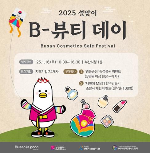 부산시는 내일(16일) 오전 10시 30분부터 오후 4시 30분까지 시청 1층(대회의실 앞)에서 '2025 설맞이 비-뷰티(B-beauty)데이'를 개최한다고 밝혔다.