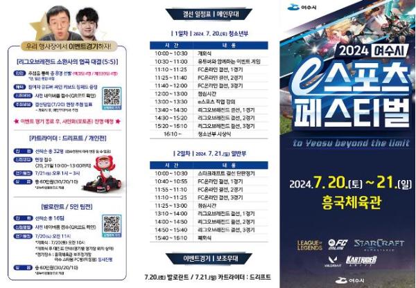 여수시가 오는 20일부터 2일간 흥국체육관에서 ‘2024 여수시 e스포츠 페스티벌’ 결선전을 개최한다.