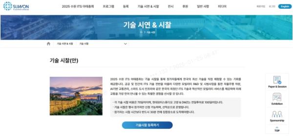 수원시가 2025 수원 ITS 아태총회 기간에 참가자들이 대한민국의 선진 ITS 기술을 체험할 수 있는 기술 시찰 프로그램을 준비한다.