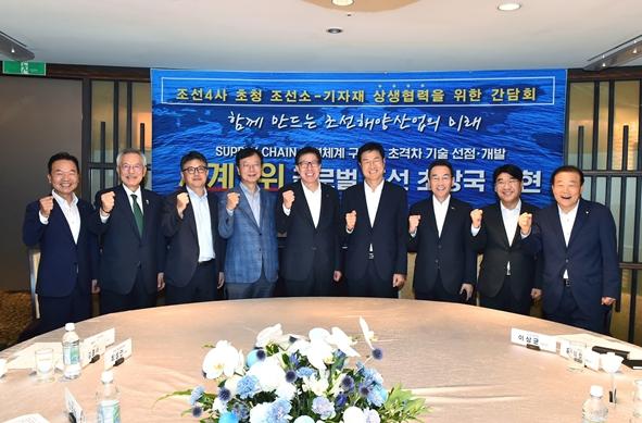이날 간담회에서 참석 대표들은 중대형 조선소와 조선기자재기업이 상생 협력을 이뤄 조선산업을 한층 더 발전시킬 수 있도록 지혜를 모았다.