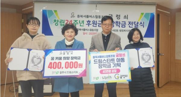 충북셔틀버스협동조합 굴렁쇠는 지난 8일 청주시 드림스타트 아동에게 장학금을 기탁했다.
