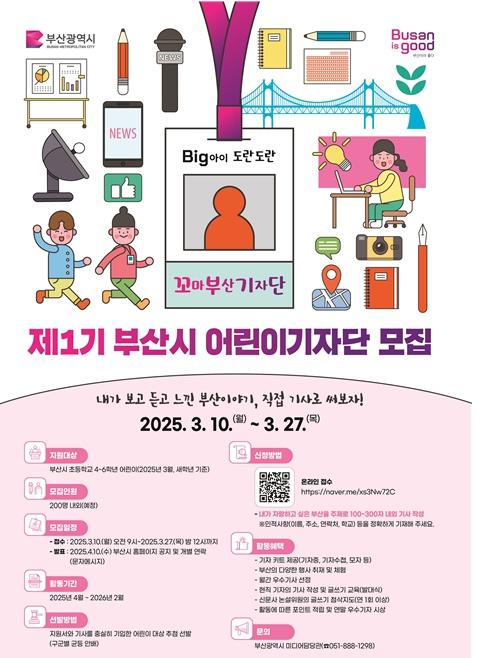 '제1기 시 어린이기자단'의 활동기간은 오는 4월부터 내년(2026년) 2월까지로, 부산의 다양한 행사를 취재하고 기사를 작성해 어린이의 시선에서 바라본 부산의 이야기를 생생하게 전할 예정이다.