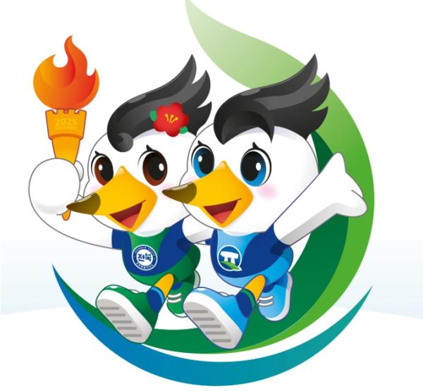 마스코트 당선작은 고창의 군조인 뿔제비갈매기를 모티브로 유네스코 생물권보전지역인 개최도시 고창군의 지리적 상징성을 담았으며 한쌍의 뿔제비 갈매기가 함께 성화를 들고 달려가는 모습을 통해 스포츠 축제 분위기를 친근하고 사랑스럽게 표현했다.