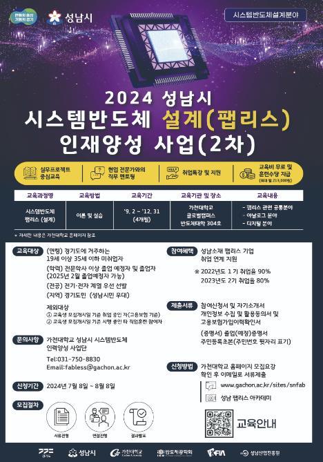 성남시는 7월 8일부터 한 달간 ‘제3기 시스템반도체 팹리스 아카데미’ 2차 교육생 40명을 모집한다.