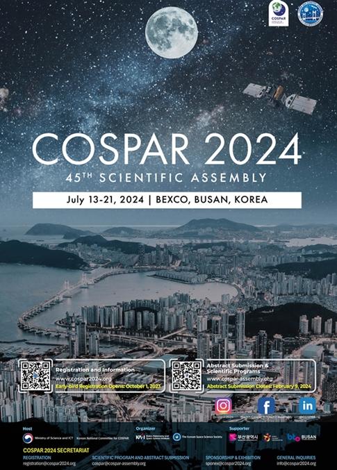 부산시는 우주과학 분야의 세계 최대규모 국제학술대회인 '제45회 국제우주연구위원회(COSPAR, Committee on SPAce Research) 학술총회'가 오는 7월 13일부터 21일까지 9일간 벡스코에서 대한민국 최초로 열린다고 밝혔다.