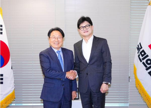 강기정 광주광역시장이 13일 서울 국민의힘 중앙당사에서 한동훈 대표를 만나 지역 현안을 논의하고 광주발전 협력을 요청했다.