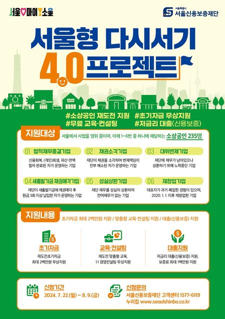 시는 팬데믹 기간 줄폐업 위기에 놓인 소상공인을 지원하기 위해 ‘서울형 다시서기 프로젝트’를 시작했다. 2021년 98명을 시작으로 지난해까지 800여명의 소상공인을 지원한 결과 평균 생존율이 87%로 전국 기업의 평균생존율 64.1%보다 월등히 높았다. 이후 현장 소상공인의 목소리와 지원 방안을 지속적으로 업그레이드해 올해 4.0버전을 내놨다.