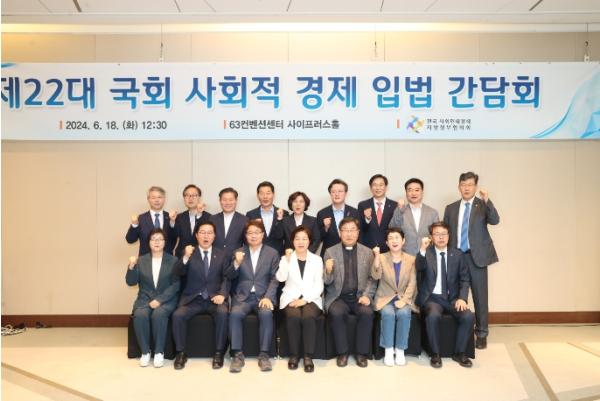 이날 간담회는 제22대 국회 개원에 따라 협의회 회원 단체장과 사회적경제 활성화를 위해 노력한 국회의원이 모여 사회적경제 입법 전망을 논의하고 사회적경제 활성화를 위한 지방자치단체와 국회 간 협력 방안을 모색하고자 마련됐다.