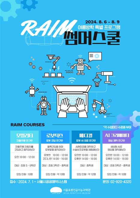 서울시가 서울로봇인공지능과학관(Seoul Robot & AI Museum, RAIM) 개관을 앞두고 첫 교육프로그램인 ‘RAIM 썸머스쿨’을 시범 운영한다.