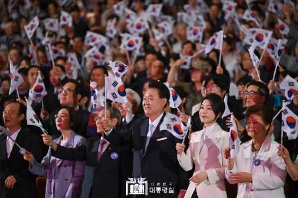 특히 어린이 뮤지컬단의 합창(뮤지컬 ‘영웅’ 삽입곡인 ‘그날을 기약하며’) 및 만세 퍼포먼스 이후 이어진 이번 경축식의 주제 영상은 1945년 광복 이후 오늘날 대한민국의 자유와 번영을 이뤄낸 중요한 역사적 장면마다 등장하는 태극기의 의미를 짚어보며, 위대한 국민과 위대한 나라의 79년을 돌아보자는 메시지가 담겼다.