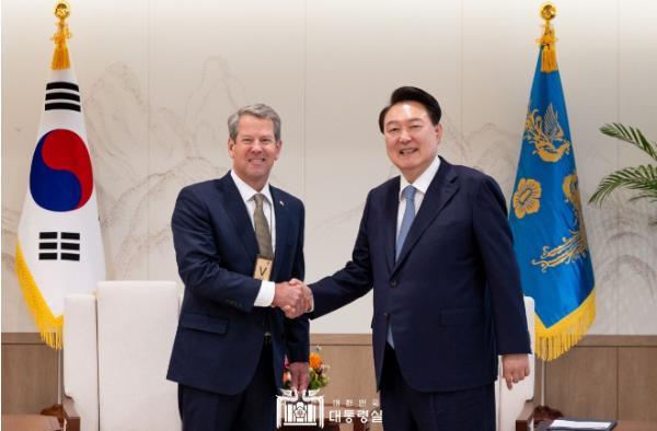 윤석열 대통령은 6월 18일 오후 '브라이언 켐프(Brian Kemp)' 미국 조지아 주지사를 접견하고 한-조지아주 협력 관계와 한미동맹 발전 방향에 대해 의견을 교환했다.