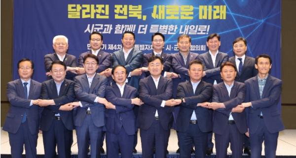 전북자치도는 19일 전주 더메이호텔에서 김관영 도지사와 심민 전북특별자치도 시장군수협의회장(임실군수) 등 도내 14개 시장·군수가 참석한 가운데 민선 8기 ‘제4차 도-시군 정책협의회’를 개최했다.