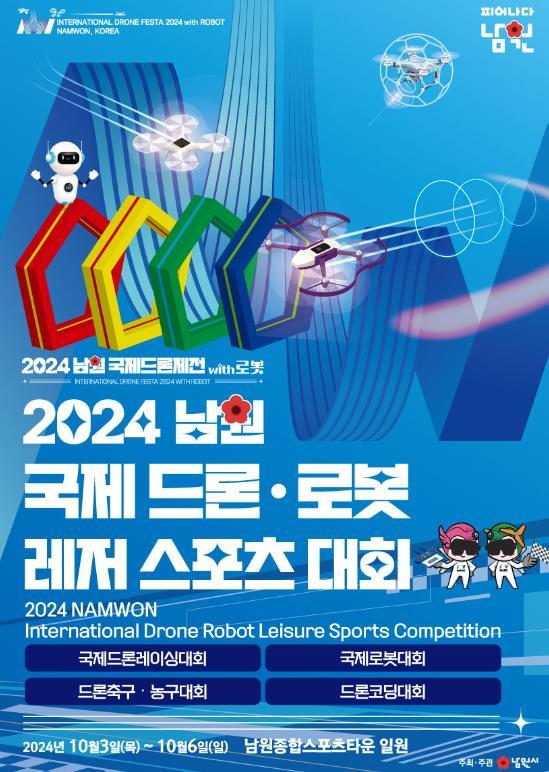 드론 레저스포츠로 피어나는 남원에서 오는 10월 3일에서 6일까지 남원 종합스포츠타운에서 ‘2024 남원 국제드론제전 with 로봇’이 개막 할 예정이다.